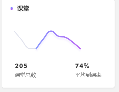 一个月以来的总课堂数为205,课件总数(课堂预习率)、试卷总数、公告总数的统计数据不尽理想。