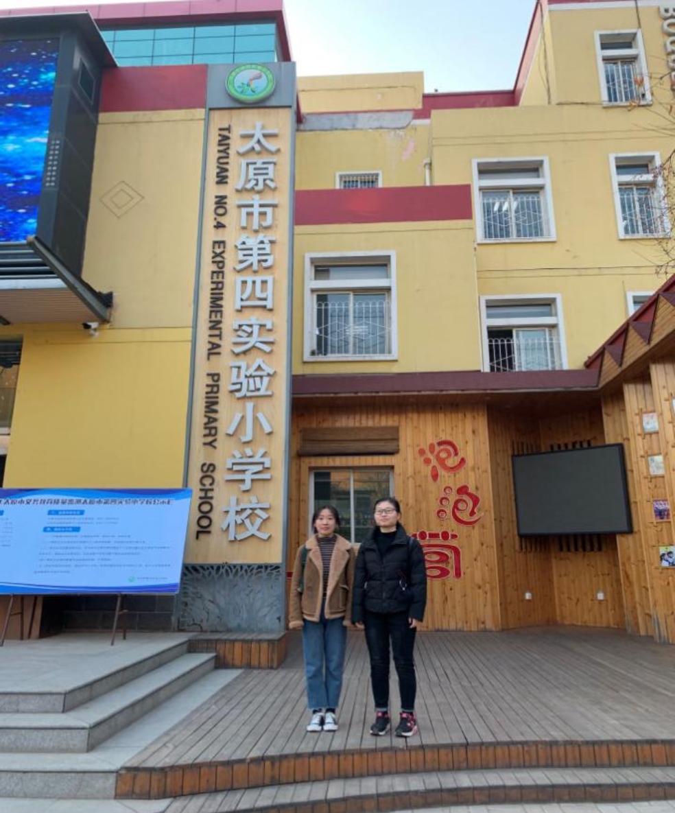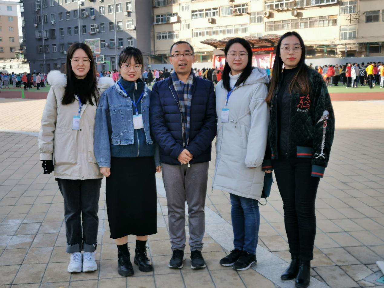 与郑玉飞老师在迎泽区双西小学门口合影留念