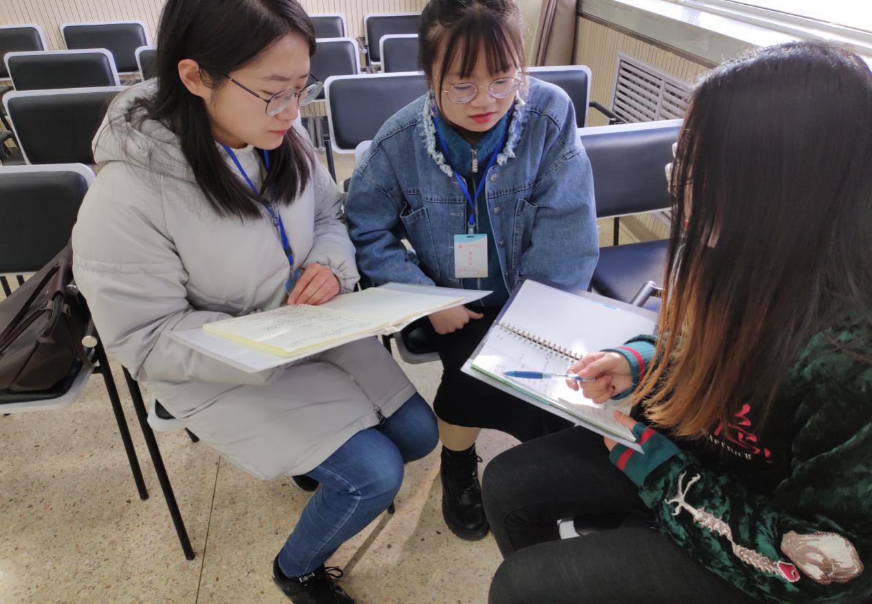 各位研究生在观摩的过程中认真记录,并在休息时间与郑玉飞老师、钱学锋老师围绕比赛内容展开讨论,钱学锋老师还为我们对比了两位教师对于同一内容《角的度量》的不同处理方式,分析对比出一个属于传统课堂教学,而一个属于新课改下的课堂教学,并给我们详细分析了这两个课的优缺点。在与两位老师的讨论中,大家对于所观摩课有了更加深入的了解。