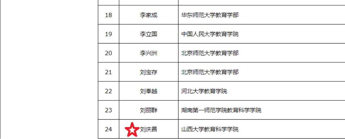 在全国教育学的72位作者中,我院刘庆昌教授和侯怀银教授入选。刘庆昌教授继2016年入选之后,2019年再次入选。