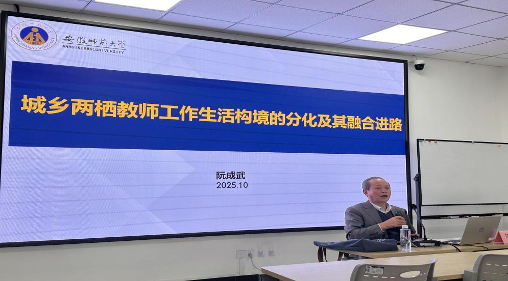 在此基础上,阮教授将空间视域自然延伸至教育实践现场,聚焦“城乡两栖教师”这一微观群体。基于对八十万条一线访谈资料的深度挖掘,他揭示了该群体在城乡之间的“生计跨越”与“职业留守”所形成的独特工作生活构境,生动展现了宏观城乡结构与个体能动性之间的空间互动机制。阮教授创新性地将这种构境划分为“被动临时型”与“主动持久型”多种类型,并从空间环境、身份归属、自我认同等维度解析其内在张力,提出了构建制度通道、优化政策环境、弘扬教育家精神等系统性融合路径。