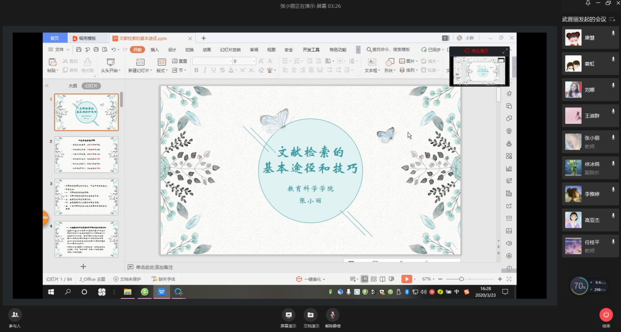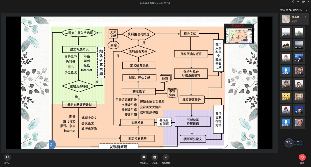 在新冠肺炎疫情防控的特殊时期,为更好培养我院研究生的学术规范意识,扎实学术研究基础,提升学术研究能力,学院研究生教学工作领导小组于2020年3月23日下午,特邀我院副教授张小丽老师为全院教育类的硕士研究生做了关于“文献检索的基本途径和技巧”的线上专题讲座,我院部分教师旁听了讲座(师生共计280人)。