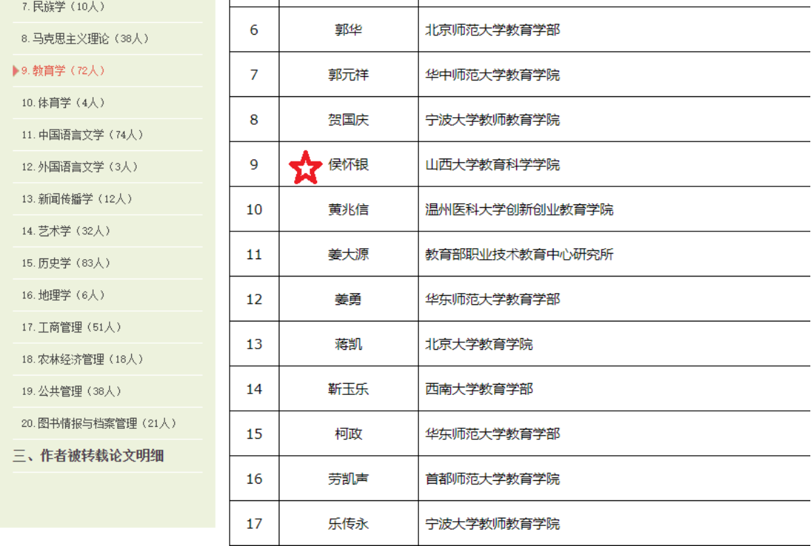 在全国教育学的72位作者中,我院刘庆昌教授和侯怀银教授入选。刘庆昌教授继2016年入选之后,2019年再次入选。