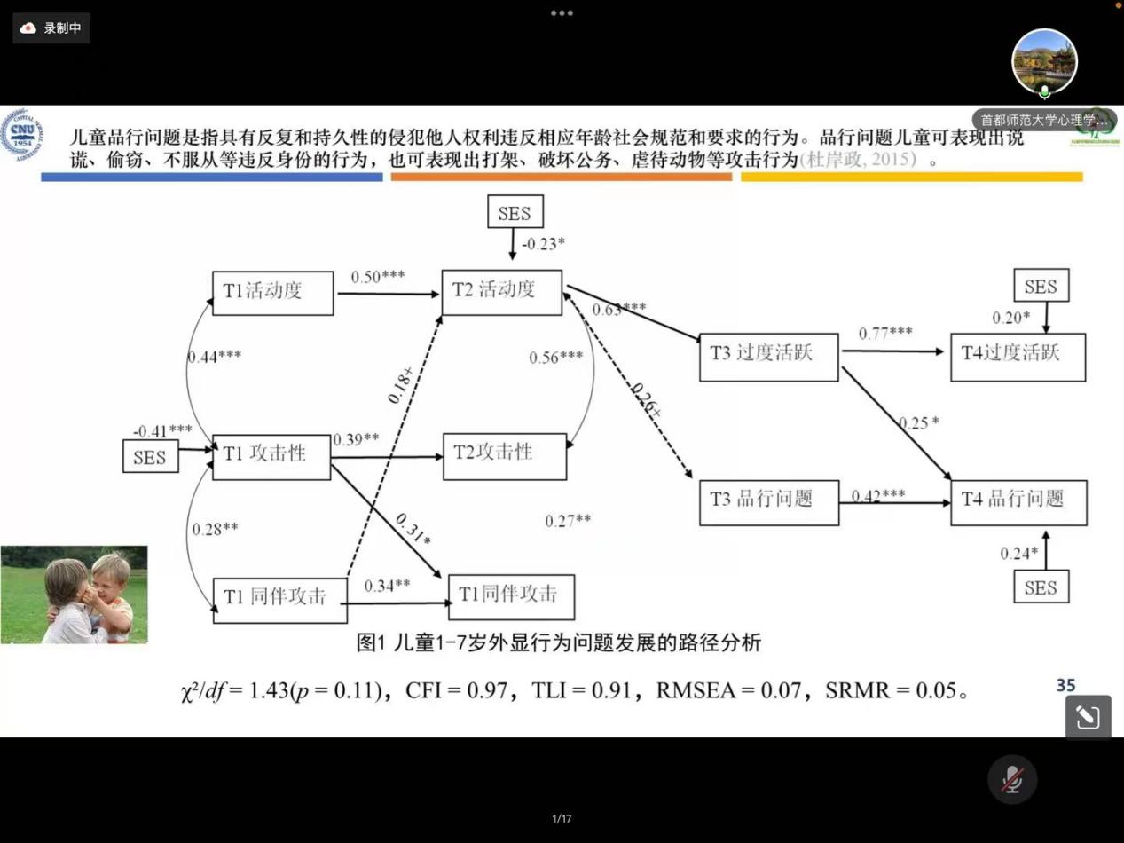 “停课不停学、云端新互动”。2022年4月15日下午15:00,我院以基层教学组织为依托,开展“师生有约”活动暨校庆系列学术活动。本次活动邀请到首都师范大学王争艳教授在腾讯会议进行了分享,王争艳教授围绕儿童问题行为的早期发生,对如何通过纵向追踪研究考察内外化问题行为在不同年龄阶段的表现与特征及跨领域的级联(瀑布)效应,问题行为的共发性以及家庭环境的作用三个问题与大家进行了探讨。师生积极参与,与会者达200余人。在讨论环节,老师和同学们对王争艳教授讲座中存在的疑问进行了反复问询和深入讨论,学术氛围浓厚。