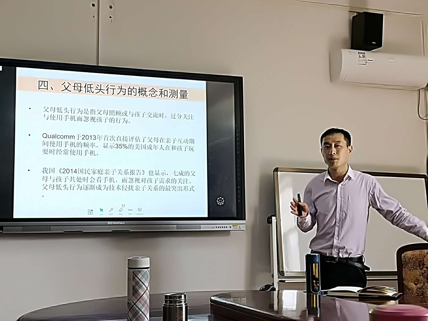 之后,王老师从七个方面报告了父母低头行为:(1)介绍了低头族学术研究的缘起。(2)提出了低头行为的研究逻辑:手机成瘾——伤己、低头行为——伤人。(3)勾勒了低头行为影响后果的理论基础。(4)明晰了父母低头行为的概念和测量。(5)梳理了父母低头行为对亲子关系的不良影响。父母过度沉迷于自己的手机,会对孩子和亲子关系产生明显的不良影响,总结为七个方面:增加孩子意外伤害的风险、损伤孩子人际交往的能力、降低亲子关系交流的质量、导致孩子问题行为的增多、提高孩子网络成瘾的可能、婚姻关系的新杀手、儿童虐待的新形式。(6)分享了为何对父母低头行为感兴趣。(7)汇报了正在做的多个研究。