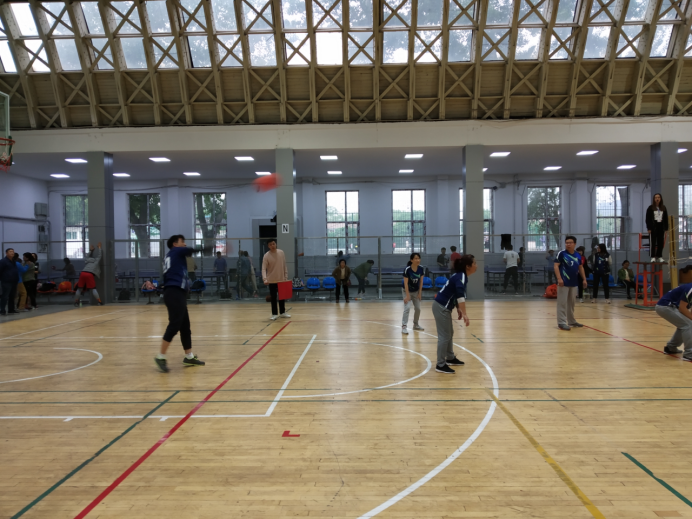 教科院参赛队伍在韩树林书记的带领、郭芬云老师的组织和教练下,包括许家巧副书记和徐冰鸥副院长在内的来自教育学、心理学、学前教育专业和教辅行政的参赛队员个个精神抖擞,积极踊跃,通过赛前训练、赛情观摩和模拟比赛,做好了充分的赛事准备。在接下来的小组赛、十六强赛、八强赛、排名赛中,队员们齐心协力,顽强拼搏,各展绝技,打出一系列漂亮的配合战,赢得围观师生的阵阵喝彩。由我院师生共同组建的“教科拉拉队”也鼎力相助,呐喊声铿锵有力,加油声此起彼伏,有教科院参加的整个赛场充满气势、热烈非凡。