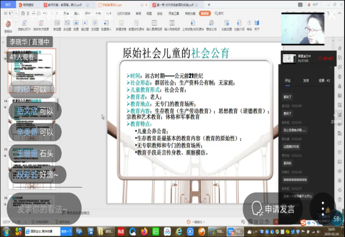 1.当主播不容易,需要熟悉新技术,熟悉新的教学环境,课前担心没有学生的独角戏如何唱下来,课中担心网络出现不配合带来的手忙脚乱,是对心理和技术的很大挑战。