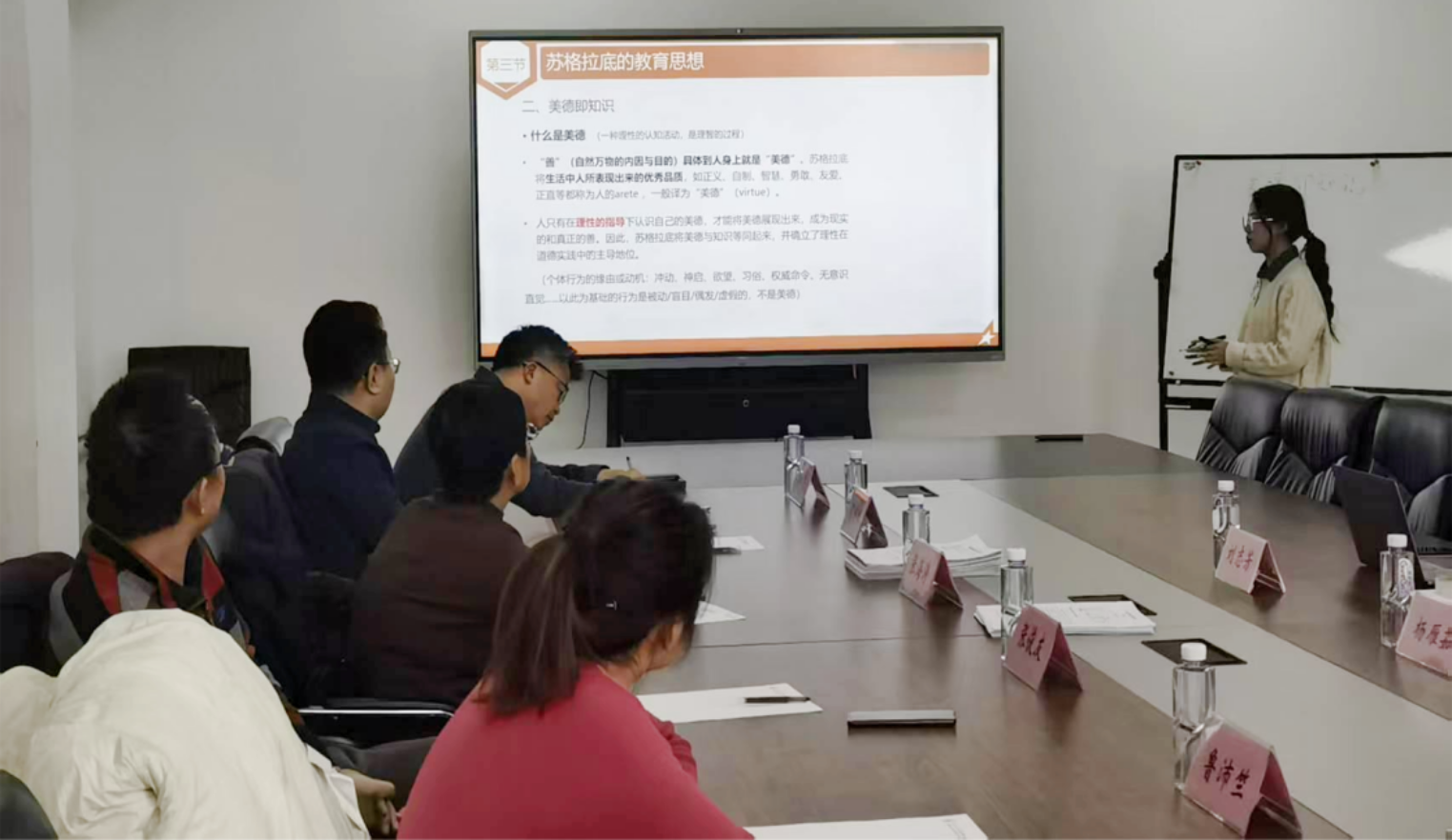 刘志芳讲授《西方教育思潮研究》中第一章第三节“苏格拉底的教育思想”,围绕“美德即知识”展开讲解。她从什么是美德,什么是知识,美德即知识的含义,美德可教四个方面层层深入,着重介绍了苏格拉底“美德即知识”的教育思想。